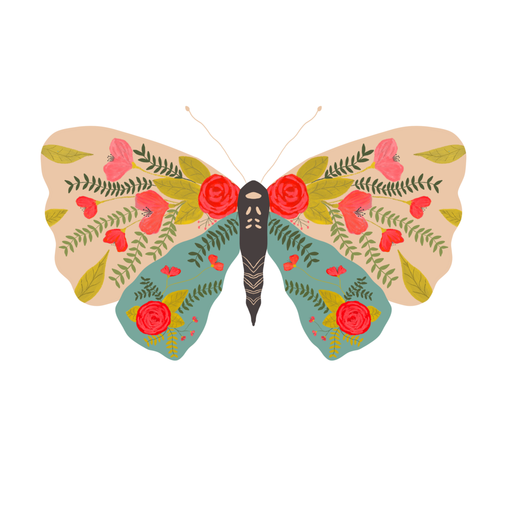 And I am sure you will be challenged to draw the second butterfly with roses, flowers, and leaves on her wings.